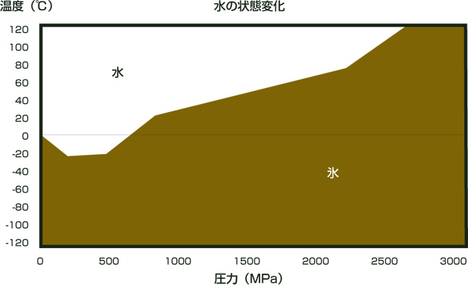 水は通常0℃で氷になりますが、1500MPaの圧力をかけると多結晶の氷に変化します。